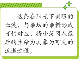 地板是拿沙子擦洗过的,太阳的反光有些耀眼。鲜血像一条小溪流向门口,路过阳光照得到的地方特别刺眼。