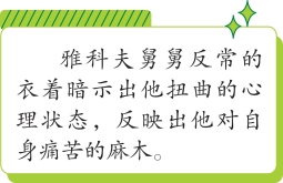 “他绊了一跤。”雅科夫舅舅嗫嚅道,他耷拉着脑袋,黯淡的眼睛不停地眨着,整个人显得疲惫不堪。