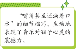 有时候,他听得太入迷了,一不留神便从椅子上滑了下来,于是,他干脆就坐在地板上继续听,眼神还是那么直勾勾的。音乐使所有的人着迷,屋子里只有茶壶发出的声音,和谐地伴奏着。