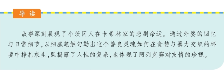 “因为他们以后都要自己开染坊,而他们都希望万尼亚以后去自己的染坊里帮忙,”外婆向我解释道,“所以嘛,他们俩就都在对方面前说他坏话!狡猾着呢!而他们也都在担心万尼亚最后会留在你外公身边,而不选择他们俩。你外公也有自己的想法,他想和万尼亚一起另开一家染坊。这对你两个舅舅是十分不利的。明白了吧?”她面带微笑。