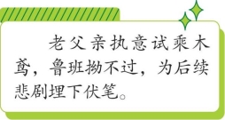 鲁班一边扶父亲坐稳,一边叮嘱说:“爹,记住,敲一下机关升十丈,敲两下就……”