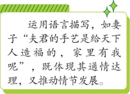 妻子递上包袱,说:“夫君的手艺是给天下人造福的,家里有我呢。”