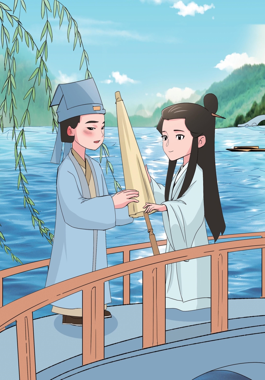 雨丝“滴答”,落在青石板上,白素贞的心跳个不停。许仙捡起油伞递过去,当他的指尖与白素贞的手指相触时,他的耳朵“腾”地红了。