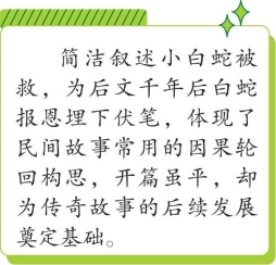 老翁收过果子,就打开了笼子。小白蛇唰地钻回了草丛里,然后偷偷回望了一眼牧童,只见牧童也望着它笑哩——这一眼,小白蛇便记住了牧童整整一千年。