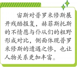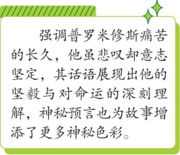 这个囚徒的痛苦也真的将是永久的,或将延续三万年之久。尽管他也大声悲叹,他也呼唤风、江河、大海的波涛、万物之母大地和洞察一切的太阳为他的苦难做证,但他的意志是坚定不移的。“一个人只要认识到了必然的不可抗拒的威力,”他说,“他就必定会忍受命中注定的一切。”他曾预言:新的婚姻将使诸神的主宰者堕落和毁灭。不管宙斯怎样威胁他,他也不详细说明这似明犹暗的预言。