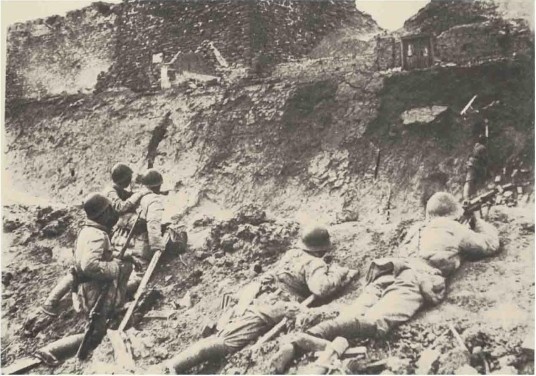 潍县战斗后,“潍县团”指战员在总结攻城经验并演练