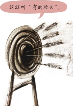 ,上面是箭头的形状,下面是交叉的箭羽。“有的放矢”是说放箭要对准靶子,比喻说话做事有针对性。