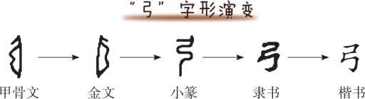 ,字形是一把弓箭的形状,背后突出的一笔,表示拉开弓箭。篆文