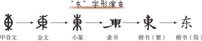 (木)里升起,造字本义也可以理解为日出东方,表示方位。古代的主位在东边,宾位在西边,因此,“东”又指主人,如“房东”“股东”。