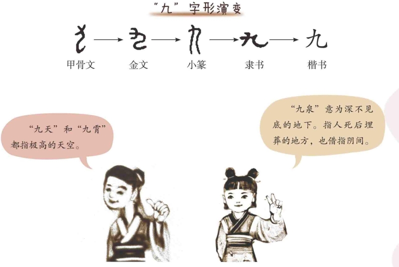 “九”在汉语中是一个特殊的数字,在个位数中,它是最大的,所以,人们用“九”来表示多、大、极的意思。“九死一生”“九牛一毛”“九死不悔”,这些成语里面的“九”都是虚指,表示很多。
