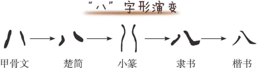 ,两条相背离的弧线表示物体被分离成两部分。造字本义指分开。后来,人们在