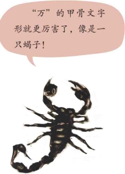 古时候,蝎子非常多。所以,“万”被假借为数词,引申为数量极多。“万年”指时间很久,“万难”指很多困难。