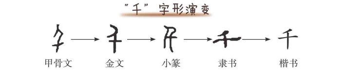 。《说文解字》中说,“千”就是“十百也”。由此,“千”引申为很多。“千秋”指很多年,“千里”指很远,“千金”指很多金子。