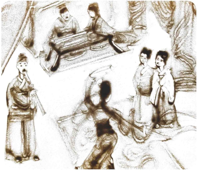 偃师吹奏音乐,那些假人有的随着音乐引吭高歌,歌声婉转动听;有的跟随音乐翩翩起舞,舞姿优美飘逸。周穆王和妃子沉浸在这一场歌舞的盛宴中,简直忘记了面前是一群假人。表演结束后,一个妃子说道:“大王,我不相信这是一群假人。这定是真人装扮的。”