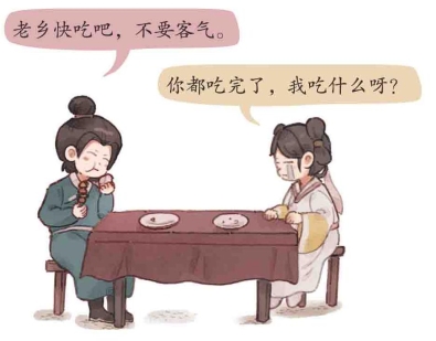 ,两个人相向而坐,张着嘴巴,中间还放着食物,这便是“乡”的甲骨文,造字本义是一起吃饭。篆文 误将两个 (人)写成两个 (邑)。简化后,只保留了字形的一部分,写作“乡”。现在,“乡”大多指家乡。