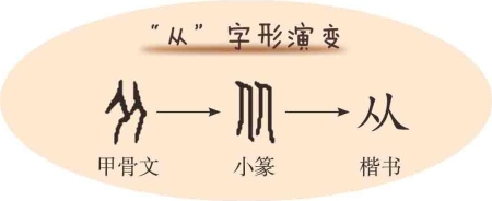 构成,像两个人一前一后相随而行。造字本义是跟随、跟从,后来引申为参加、参与,“从业”就是开始工作。
