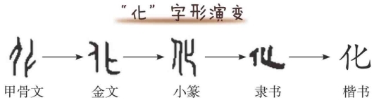 一个头朝上的人形 和一个头朝下的人形 放在一起,便是 (化)。一个人正常情况下都是头朝上的,突然头朝下,就产生了非常大的变化。古人用一个简单的字形,表达出了一个深刻的概念,可真是了不起。