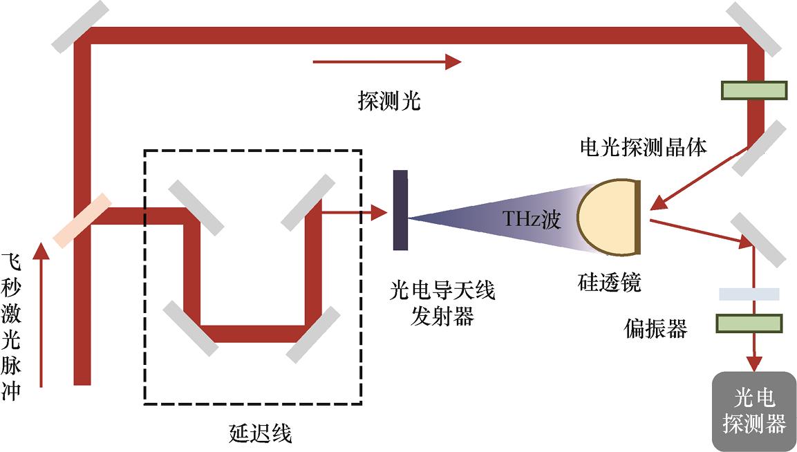 线性电光效应又称泡克耳斯效应,由德国物理学家Pockels于1893年发现,是一种电光晶体的折射系数随外加电场成比例改变的现象。泡克耳斯效应的基本原理是电场对材料折射率的线性调控。在使用线性电光效应探测THz波时,因为探测光的频率(10 14 ~10 15 Hz)比THz波频率(10 12 Hz)高2~3个数量级,所以相对于探测光,THz电场可看作低频电场。当同时施加THz电场和激光探测脉冲时,它们可调制晶体的双折射,进而引起探测光的偏振椭圆度发生改变,然后对探测光的椭圆度进行偏振分析,从而获得THz电场的振幅和相位信息。该工作是传统电光取样技术的延伸,不需要电极接触或者在探测晶体上布线,属于一种光学技术。