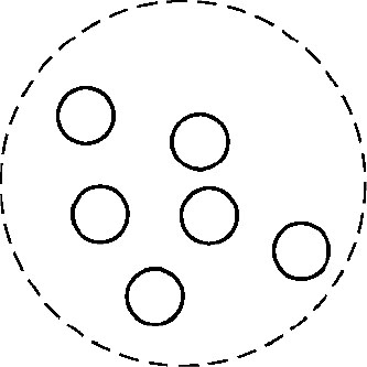 集合结构中的数据元素除了同属一个集合外,没有其他关系,各个元素是“平等”的,元素顺序是随意的,每个元素在集合中都是唯一的,该结构类似于数学中的集合,如图1.1所示。