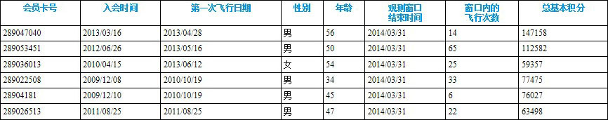 表1.1 航空客户信息表
