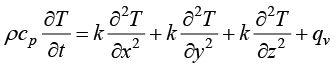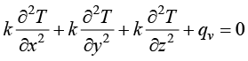 将式(1.12)代入式(1.10),各向同性同构材料的热传导方程可表示为