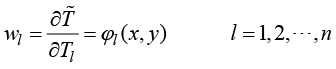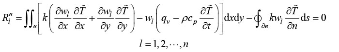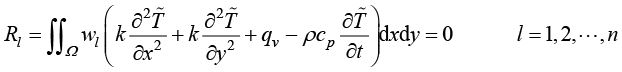 在加权余量法中,权函数直接影响最终代数方程组的形式和计算精度。已经出现多种加权函数的构造方法,其中迦辽金加权函数方法得到广泛认可。迦辽金法采用实验函数对待求参数(节点温度)的导数构造加权函数,即