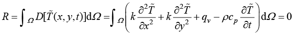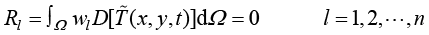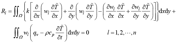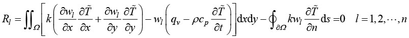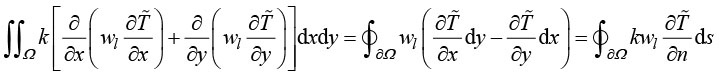 将式(1.44)代入式(1.42)中,平面温度场加权余量变换为