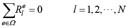 的加权积分余量,它一般情况下不等于零;有限元法假设在全部单元内关于同一节点的加权余量和为零,即