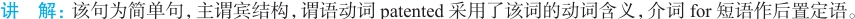 patent [ˑpætnt] n. 专利权;专利证书 v. 获得专利权