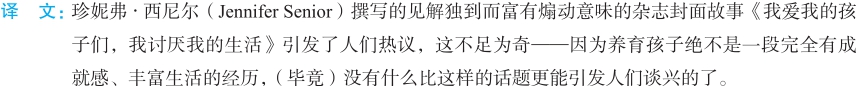 1. It’s no surprise that Jennifer Senior’s insightful, provocative magazine cover story,“I Love My Children, I Hate My Life,” is arousing much chatter—nothing gets people talking like the suggestion that child rearing is anything less than a completely fulfilling, life-enriching experience.