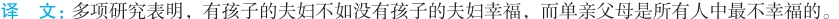 2. Rather than concluding that children make parents either happy or miserable, Senior suggests we need to redefine happiness: instead of thinking of it as something that can be measured by moment-tomoment joy, we should consider being happy as a past-tense condition.