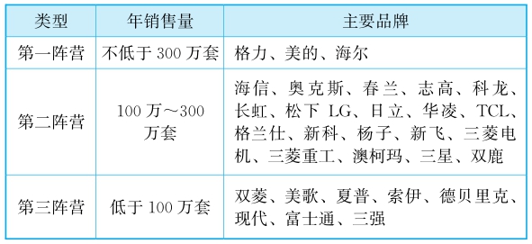 截至2005年,行业完成了市场出清,初步形成了格力、美的、海尔三足鼎立格局(如表1-1所示)。经过此次价格战,空调企业纷纷调整战略,开始重视产品质量和渠道策略。随后空调行业开始呈现结构性高增长,三四线市场需求崛起,格力和美的通过自建专卖店,深化渠道建设,下沉市场布局,进一步巩固了寡头地位,而海尔则因推行零库存失去渠道进攻性,逐步丧失了龙头地位。此外,这一阶段的空调企业逐步推进产业链一体化,比如通过压缩机等核心零部件自制提高产品适配性、出货稳定性并降低成本。此外,空调企业还利用规模优势推动成本下降。