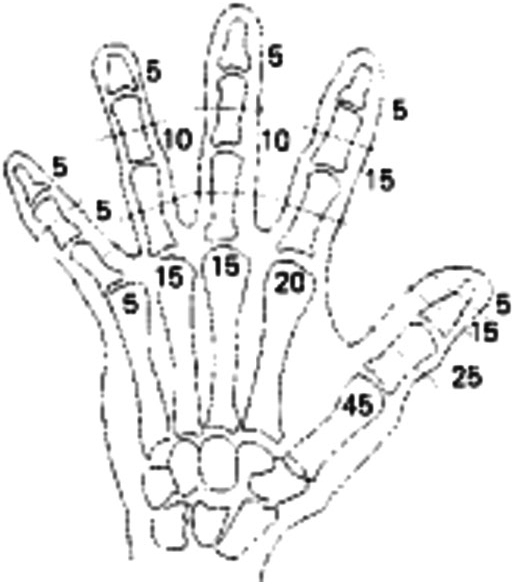 图中数字示手指缺失平面相当于手功能丧失的分值