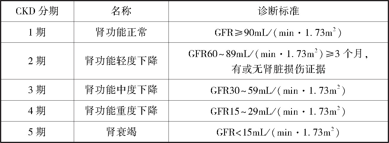 慢性肾脏病(CKD)肾功能损害分期见表B-3。