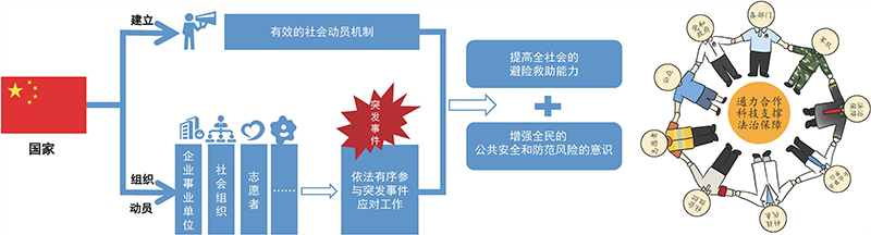 国家建立有效的社会动员机制 ,组织动员企业事业单位、社会组织、志愿者等各方力量 依法有序参与突发事件应对工作,增强全民的公共安全和防范风险的意识,提高全社会的避险救助能力。 2GB/2CG9J0nJPDbkoaAGR/3cuIFXcD2sqvwJLnIzWbw+zGWV01rEgjeS60+cmNvh