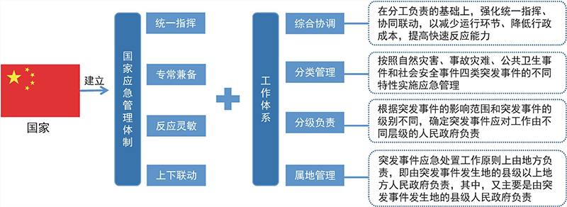 国家建立统一指挥、专常兼备、反应灵敏、上下联动的应急管理体制 和综合协调 、分类管理 、分级负责 、属地管理 为主的工作体系。 e/sRxMCWUhz42Kdjm6rYH3+Iucihb7iLh2ZrH8mBZv8SE6t6JeOdJ0GhwC4cJzXz