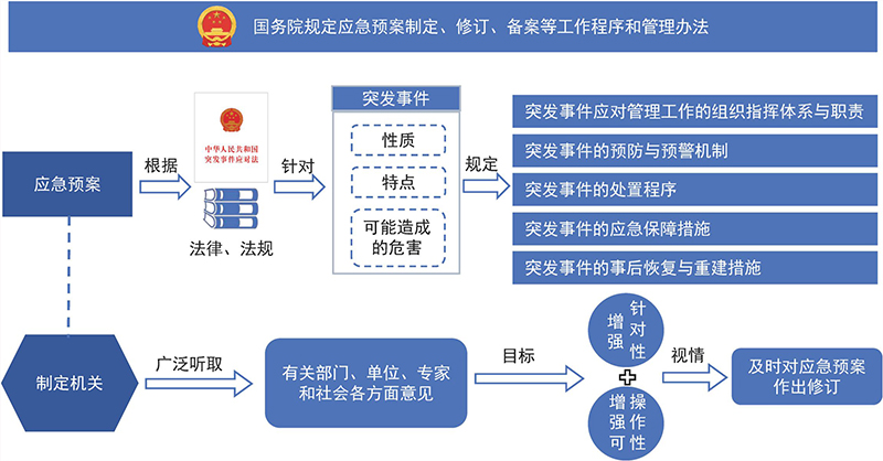 应急预案的制定、修订、备案等工作程序和管理办法由国务院规定。
