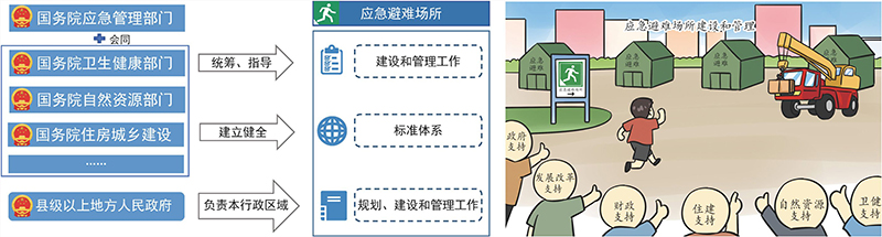 国务院应急管理部门会同卫生健康、自然资源、住房城乡建设等部门统筹、指导全国应急避难场所 的建设和管理工作,建立健全应急避难场所标准体系。县级以上地方人民政府负责本行政区域内应急避难场所的规划、建设和管理工作 。 PO1lZ4cnlaJB0X93FwdviCHtP43IOG+B4DYY9nqbgm6ImOumDTWO1NJ/LlHLpTCY