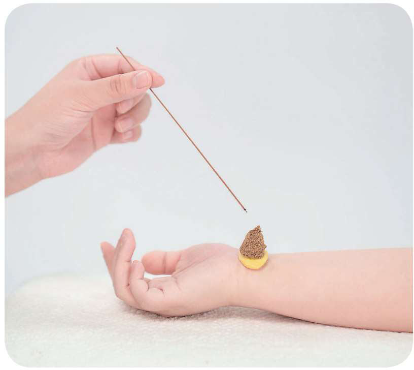 操作: 艾炷隔姜灸 5~9壮,每日 1次;或手持艾条悬灸 20分钟左右