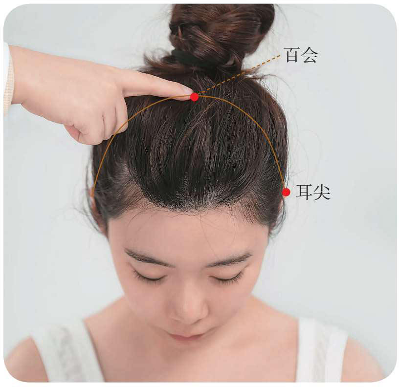 快速取穴: 坐位,头顶正中线与两耳尖连线的交叉处的位置