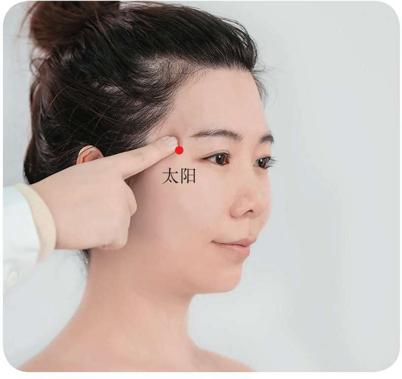 快速取穴: 位于头部侧面,眉梢和外眼角中间向后一横指凹陷处