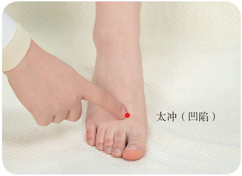 趾和第 2个足趾连接部位的中间,沿着这个中间向脚背上往上推,推到一个移不动的位置,即为太冲穴