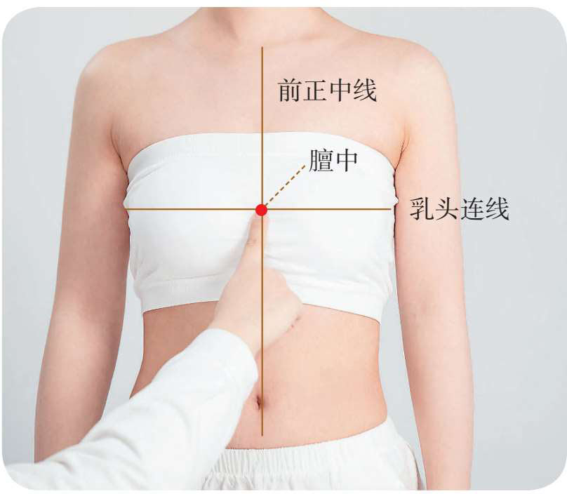 快速取穴: 在胸部,横平第 4肋间,前正中线上,两乳头连线中点