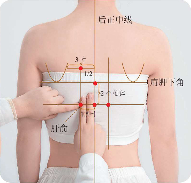 操作: 温和灸或温灸器灸肝俞穴,每次灸 20分钟左右,每日 1次