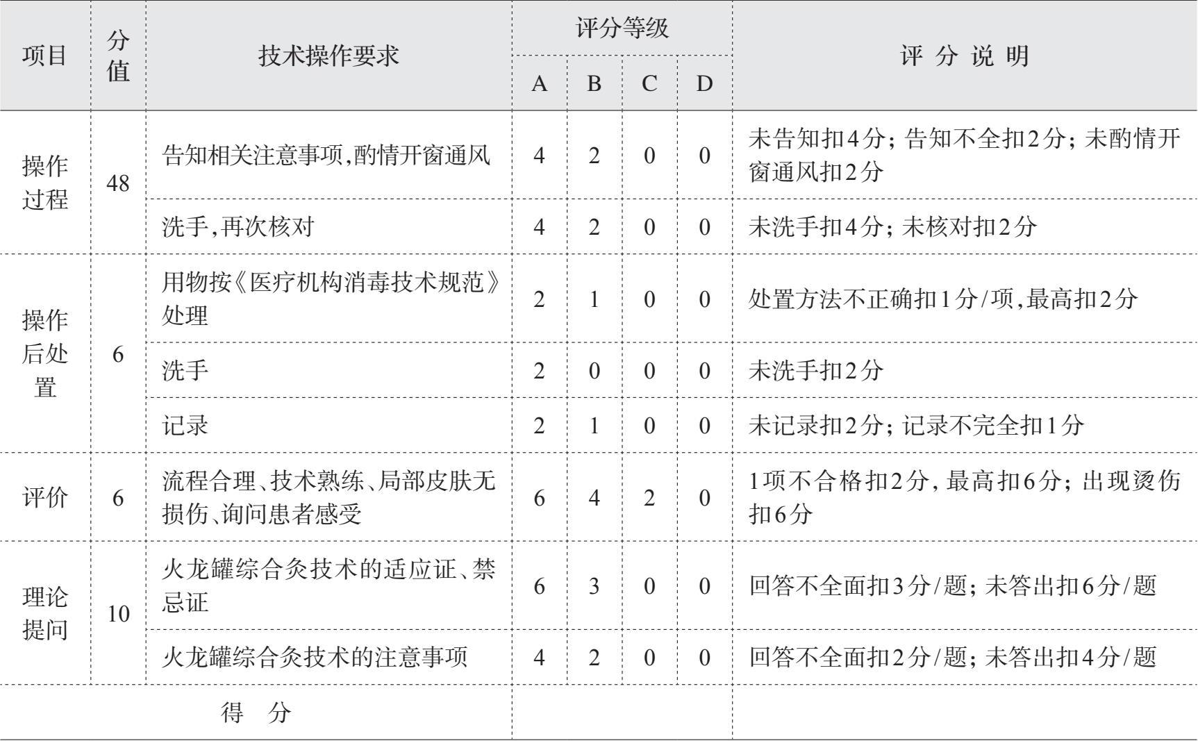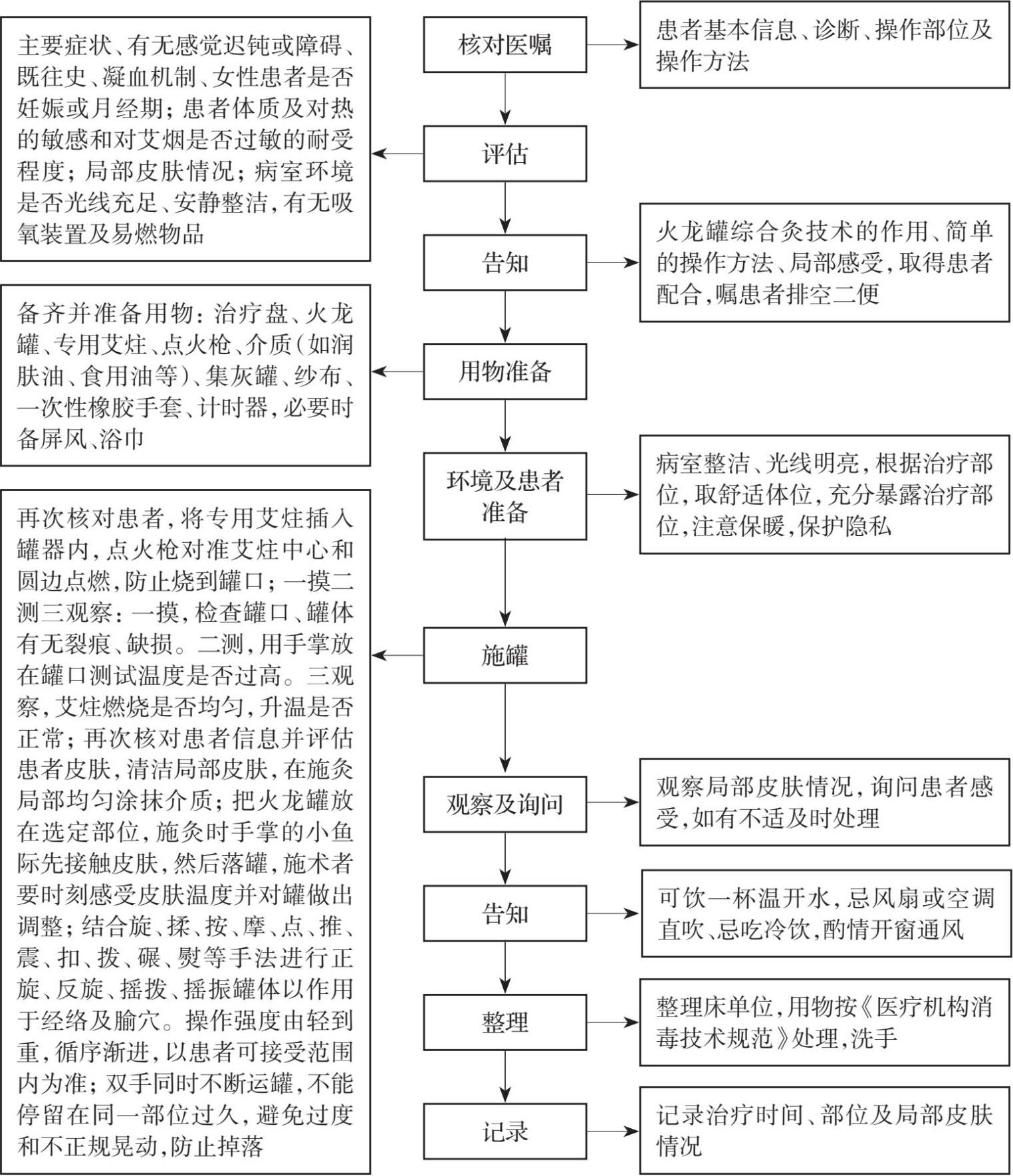 6.火龙罐综合灸过程中患者若出现头晕、目眩、心慌、出冷汗、面色苍白、恶心呕吐,甚至神昏仆倒等现象,应立即停止操作,取平卧位,通知医生,积极配合处理。