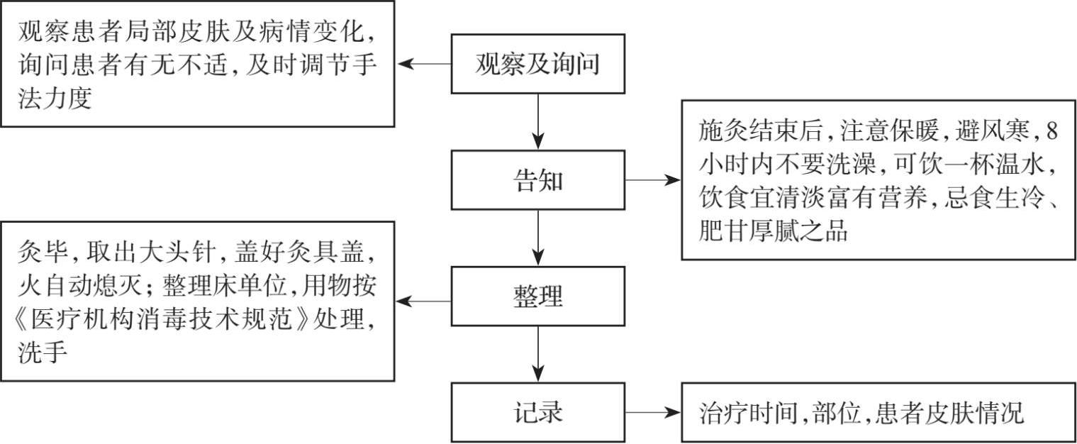 8.施灸结束,观察患者皮肤情况,必要时纱布轻拭皮肤,协助患者穿衣,安排舒适体位,评估疗效。