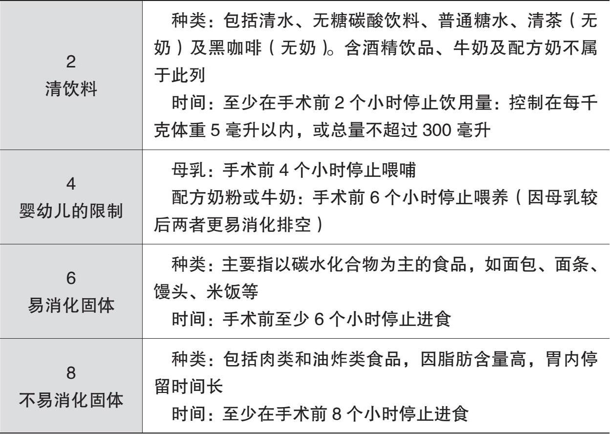 对于一般患者而言,术前需遵循一套“2-4-6-8”的禁食禁饮原则,即根据食物和饮料的类型,在手术前不同时间段内停止摄入。