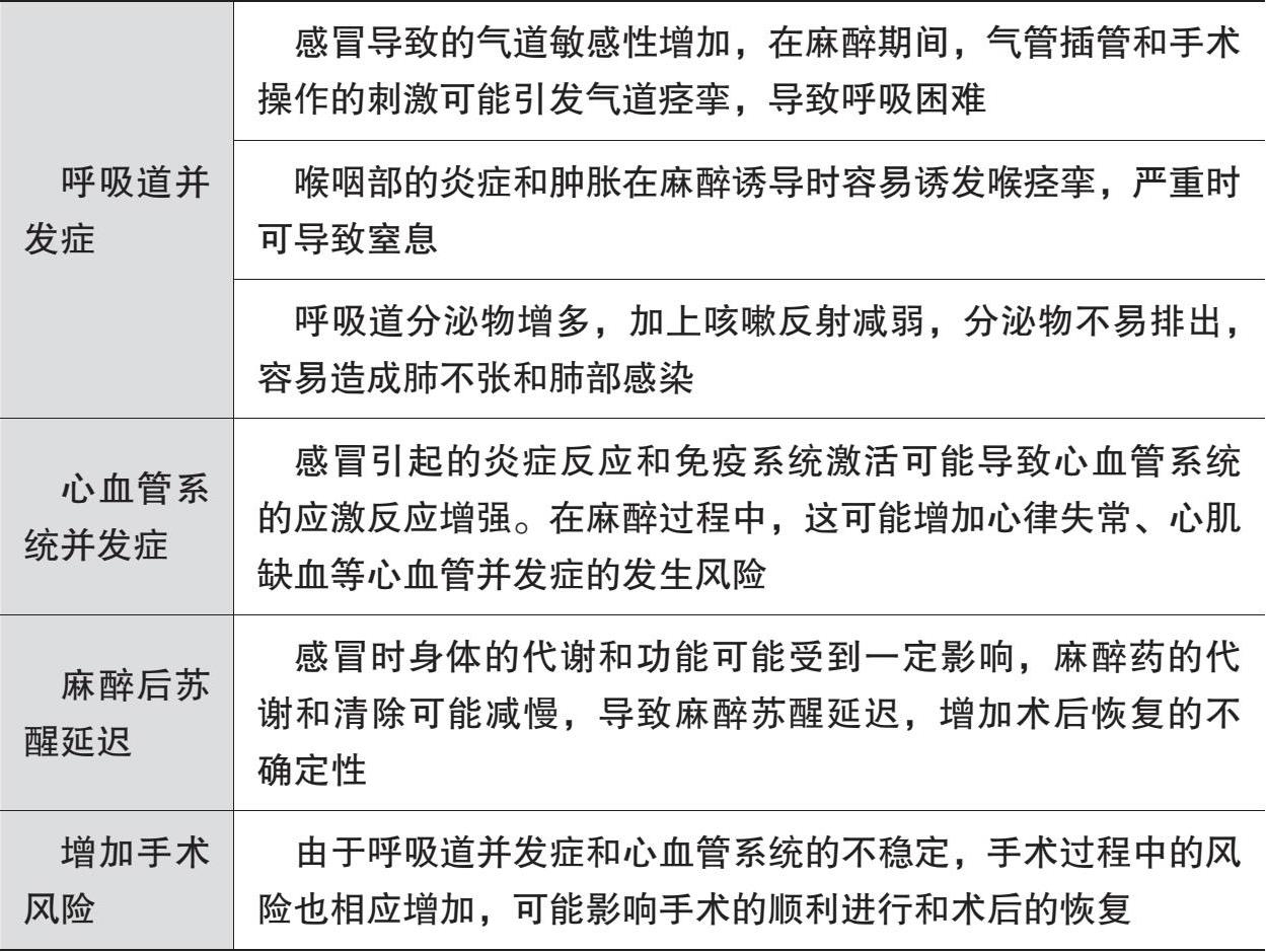 ● 患者基础状况:如果患者本身存在心肺等基础疾病,感冒可能会使这些疾病加重,从而进一步增加麻醉风险。