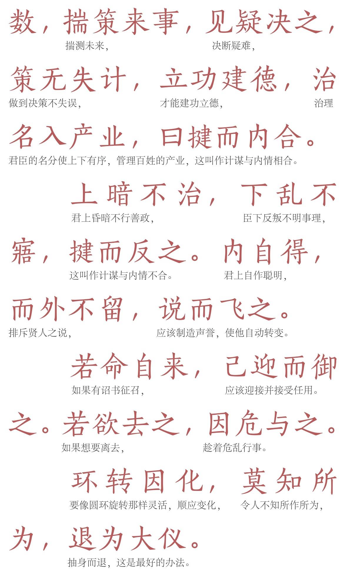 由此可见,理顺君臣上下之间的关系,臣下求宠取信于君上的重要性。而内揵之术,恰恰是解决这个问题的钥匙,用进言献计的方式交结君上,使上下之交内情相得,彼此结成坚固不可分的关系。