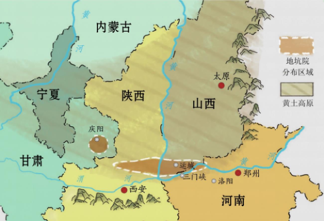 千沟万壑的黄土高原上,人们通常在山坡崖面挖窑洞居住。这种古老的生存方式延续了数千年。然而,到了黄土高原东南侧的边缘地带,也就是陕晋豫三省交会处 ,地形逐渐向平原过渡,自然的侵蚀作用也相对减弱,厚重的黄土层发育成四周深沟切割、顶部平坦广阔的完整台地,即“黄土塬”。在平坦的塬区上,没有可以挖洞的山崖,人们只好另辟蹊径,向下挖洞,形成了当地的特色民居——地坑院。